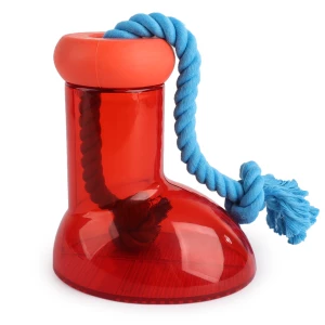 Deze voer of snack dispenser houdt honden urenlang bezig! Draai de bovenkant van de laars af, doe een paar brokjes of snacks in de laars en draai de bovenkant er weer op. De hond moet goed zijn of haar best doen om de lekkernijen langs het touw uit de opening aan de bovenzijde te krijgen. Dankzij het touw kan de hond de laars makkelijk vastpakken en verplaatsen. Ideaal als de hond zich verveelt, alleen thuis moet zijn of als beloning.