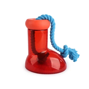 Deze voer of snack dispenser houdt honden urenlang bezig! Draai de bovenkant van de laars af, doe een paar brokjes of snacks in de laars en draai de bovenkant er weer op. De hond moet goed zijn of haar best doen om de lekkernijen langs het touw uit de opening aan de bovenzijde te krijgen. Dankzij het touw kan de hond de laars makkelijk vastpakken en verplaatsen. Ideaal als de hond zich verveelt, alleen thuis moet zijn of als beloning.