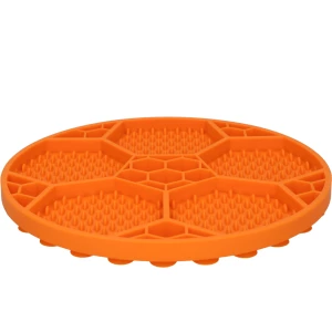 Deze ronde likmat met het patroon van een voetbal maakt het oplikken van al het lekkers extra uitdagend! De hond of kat zal goed zijn best moeten doen om alles in de hoekjes op te likken. Dankzij de zuignapjes aan de onderzijde kun je de likmat goed bevestigen aan een gladde ondergrond, zodat deze niet verschuift terwijl de hond of kat ermee bezig is.