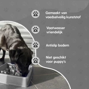 Snel eten of schrokken kan voor verschillende problemen zorgen, zoals overgewicht (doordat het eten minder goed verteerd wordt), een maagtorsie en winderigheid (doordat het dier meer lucht naar binnen krijgt). Een anti-schrok voerbak kan helpen deze problemen te verminderen of te voorkomen.