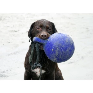De speelbal voor honden, die zich vanzelf weer opblaast.